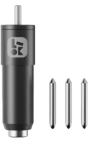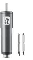 航空品质钨钢刀头、黄金裁切角度,在一代刻字机薄切尖刀和画笔基础上新增深切尖刀、印箔刀、划痕笔三款刀头